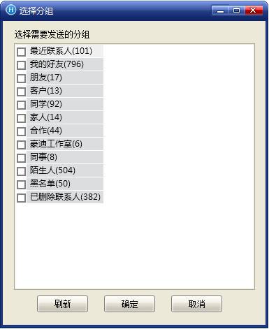 第⑤步:选择需要发送的分组(可以多选),然后点击确定就开始发送了。